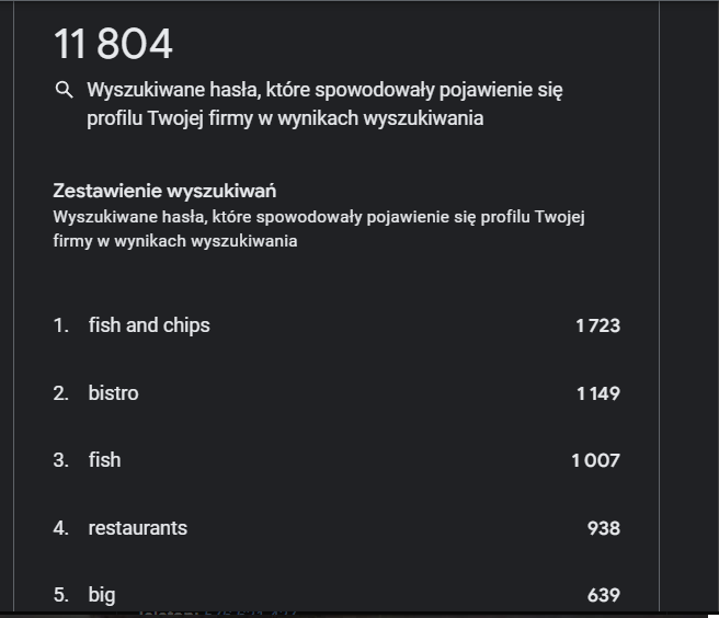 - Wysoka konkurencja w centrum Wrocławia na frazy „fish and chips”, „bistro”, „restauracje rybne”.