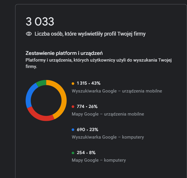 Wynik? Ponad 3 000 wyświetleń profilu i 65% więcej zapytań telefonicznych w ciągu 3 miesięcy.